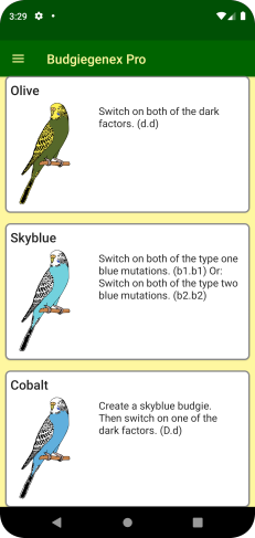 Budgiegenex, a fun to explore the effects of the genetic mutations of your budgie. Set different genetic mutations of the budgie and see how these mutations alters the outlook.