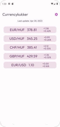 Currency exchange rates of Hungarian National Bank. Notification when new rates available. Pair any currency listed by the Hungarian National Bank. Get newest rates automatically from the official source. Calculate exchanges between currencies.